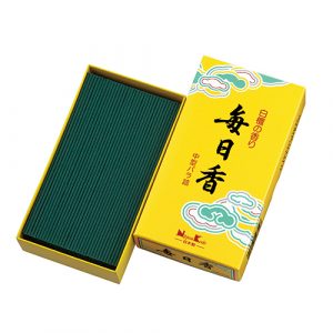明るい黄色のパッケージでおなじみの「毎日香 中型バラ詰」は、日本を代表するお線香の代名詞。